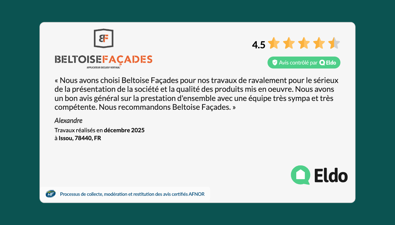 Pour ce ravalement de façades à Issou dans les Yvelines 78, Beltoise Façades a utilisé les produits VERTIKAL® :